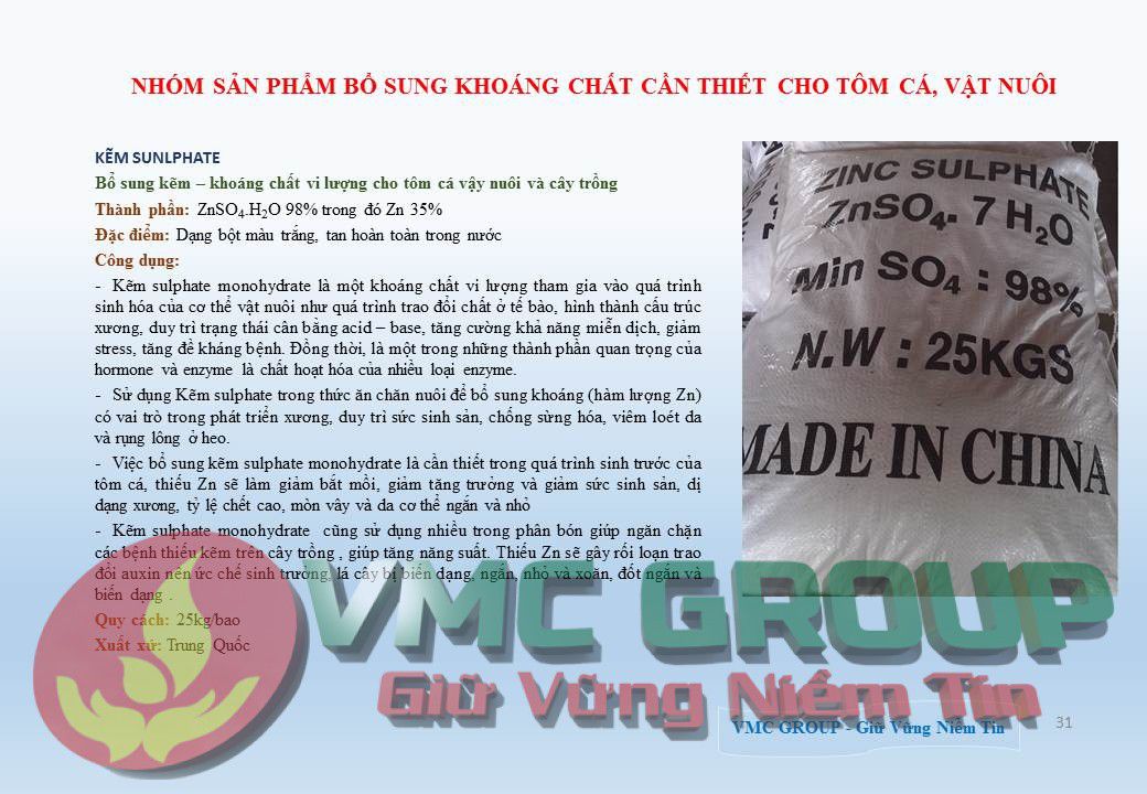CÔNG TY CHUYÊN NHẬP KHẨU VÀ PHÂN PHỐI HÓA CHẤT THỦY SẢN KẼM SUNFAT (ZNOS4 98% MIN) – HCNB