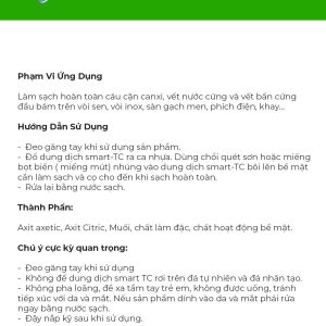 Thông số kỹ thuật của SMART TC-TẨY SẠCH SEN VÒI INOX- HCNB chi tiết như sau: