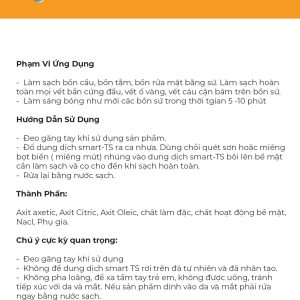 - Chất tẩy thiết bị vệ sinh bằng sứ bị ố vàng Smart TS giúp giữ bồn sứ trắng sáng lâu ngày